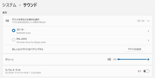 PHILIPS モニターディスプレイ 241E1D/11をノートPCに接続すると音が出なくなったので調べてみました。 今日から新しいモニターで更新しているのですが、なんと音がノートPCからでなくなりました。 あれっと思って調べると、、、 【困っているポイント】ディ…
