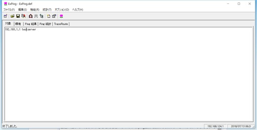設定方法は簡単なんですが、対象タブで、IPアドレスの続きで、半角スペースを入れてホスト名を入れるだけです。例えば、192.168.1.1のtestserverにpingを実行する場合は以下のような感じで設定します。